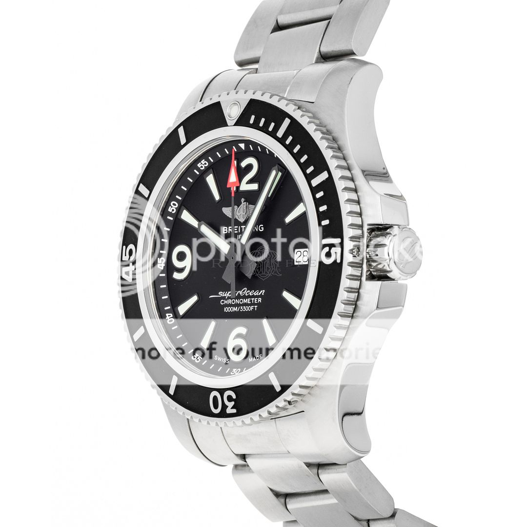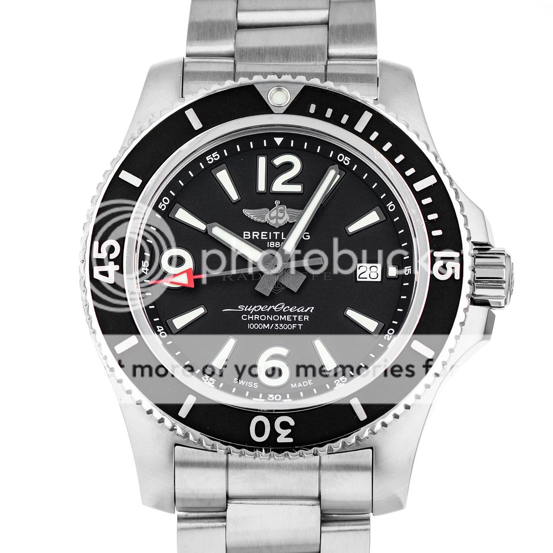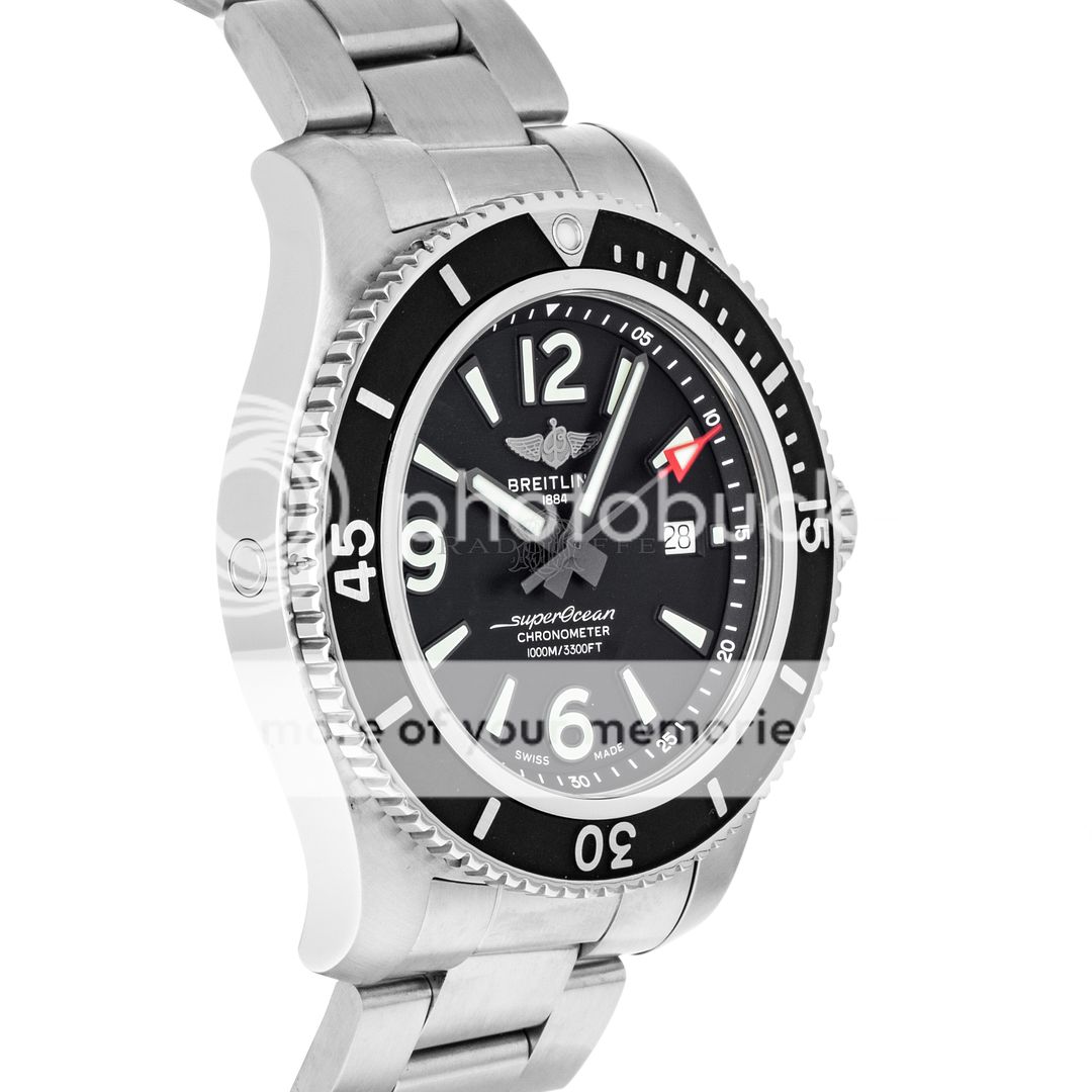 For sale is a pre-owned near mint condition 44mm stainless Breitling Superocean. The A17367D71B1A1 was originally purchased in 2022 and will come with box and papers. Accompanying the watch are the box, instructions with warranty certificate, purchase receipt, and bezel protector. The Superocean has a black dial featuring luminous hands and hour markers and a date indicator at 3 o’clock. The watch is mounted on a brushed Professional III bracelet with no stretch nor any notable signs of wear. The 162A bracelet has three removeable links and will comfortably accommodate a 7.35-inch wrist. Powering the A17367 is an automatic caliber 17 with an approximate power reserve of 38-hours.