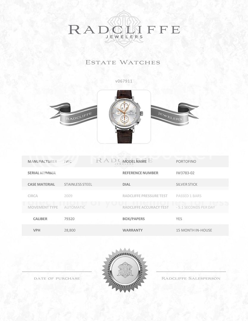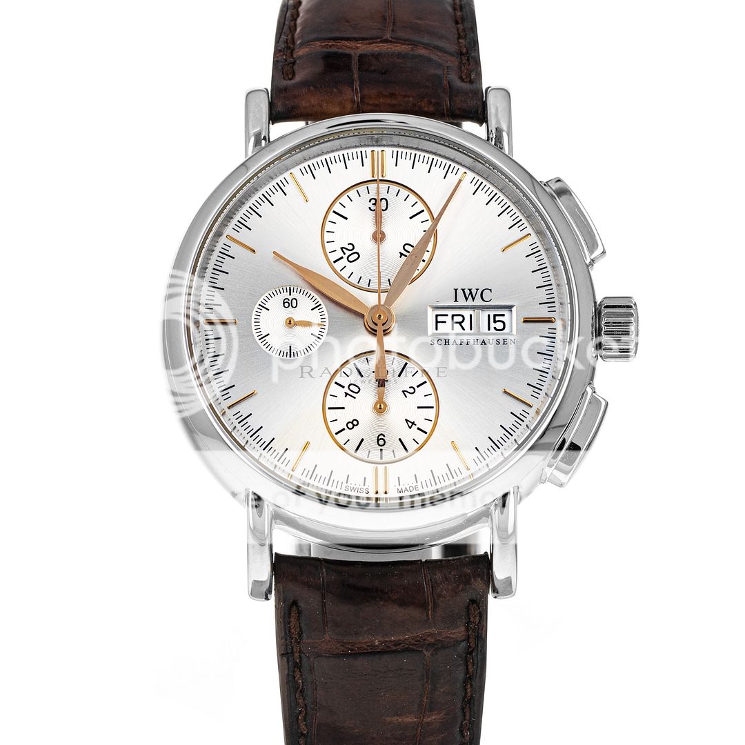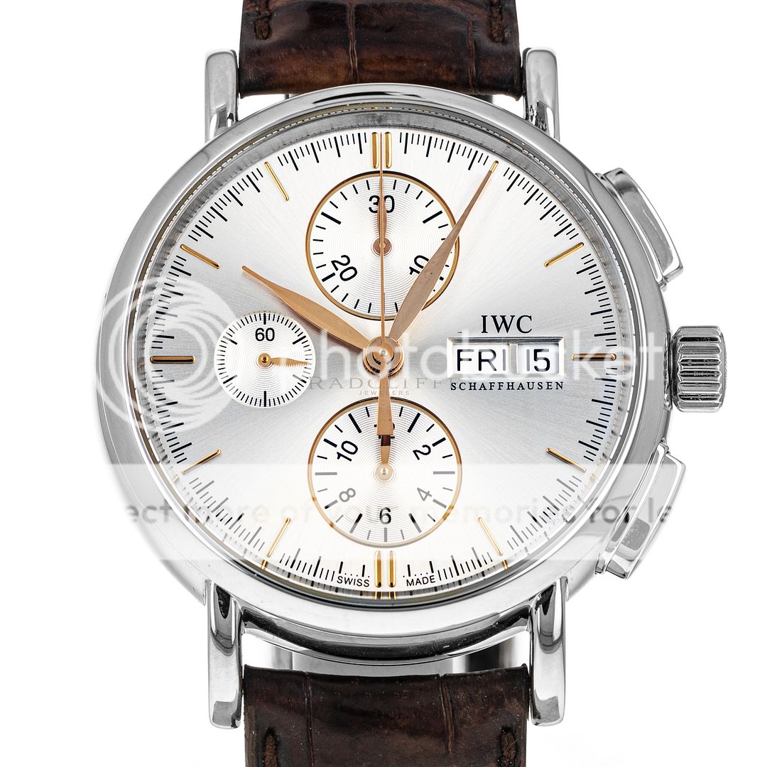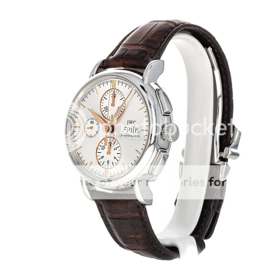For sale is a pre-owned near mint condition 41mm stainless steel IWC Portofino. The circa 2009 IW378302 includes box and papers. Accompanying the watch are the original inner box, instruction manual, service booklet, stamped guarantee card, and cleaning cloth. The Portofino features a three-register silver sunburst dial with applied stick indices and day/date aperture at three o’clock. The previously polished case remains in near mint condition with no notable imperfections and is mounted on a brown OEM alligator strap with stainless steel deployant clasp. The strap has some notable wear. The IW378302 is powered by an automatic caliber 79320 with an approximate power reserve of 44-hours.