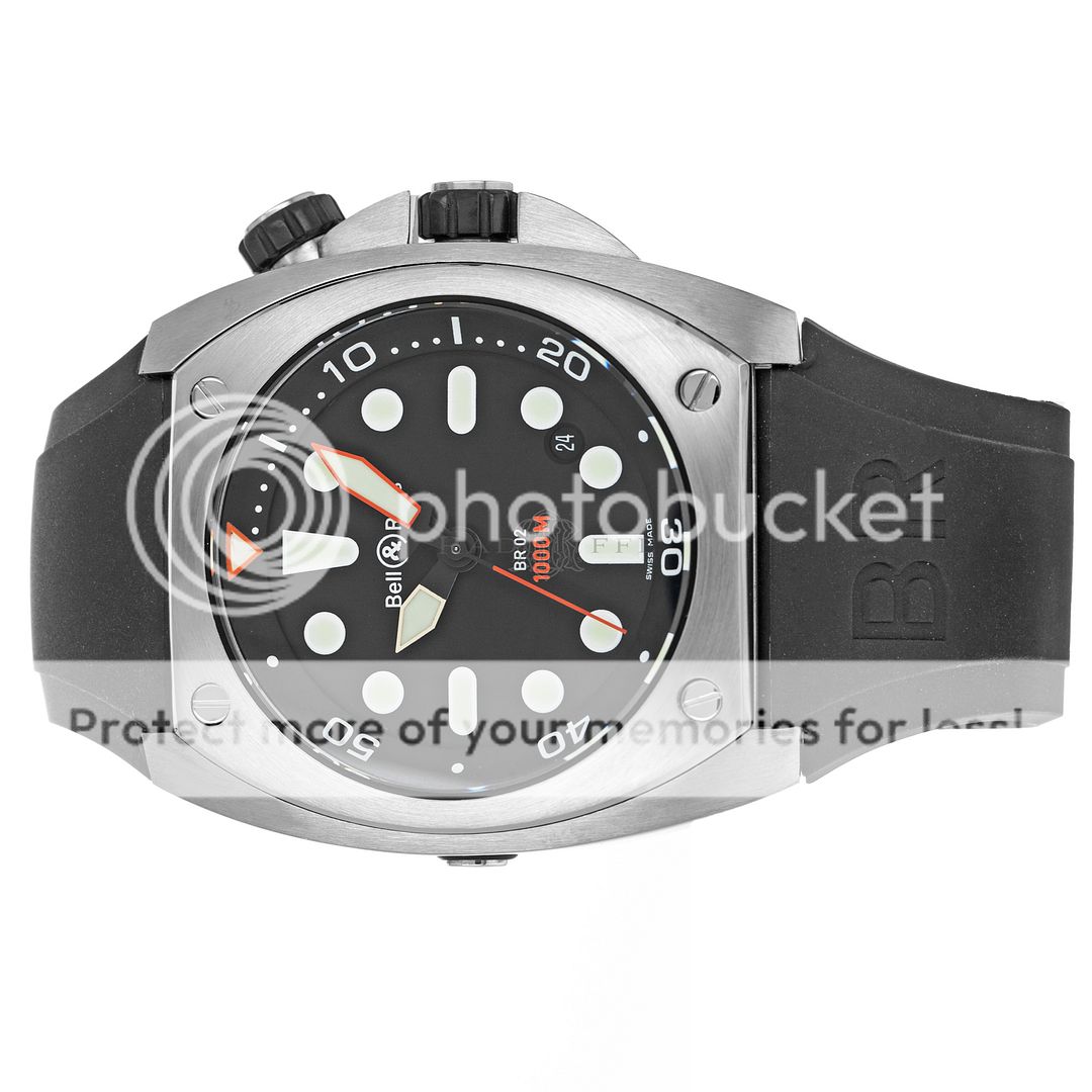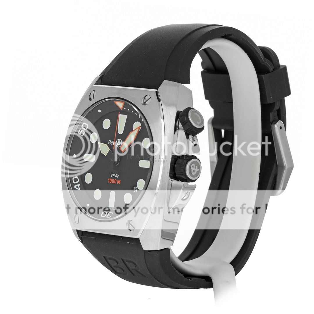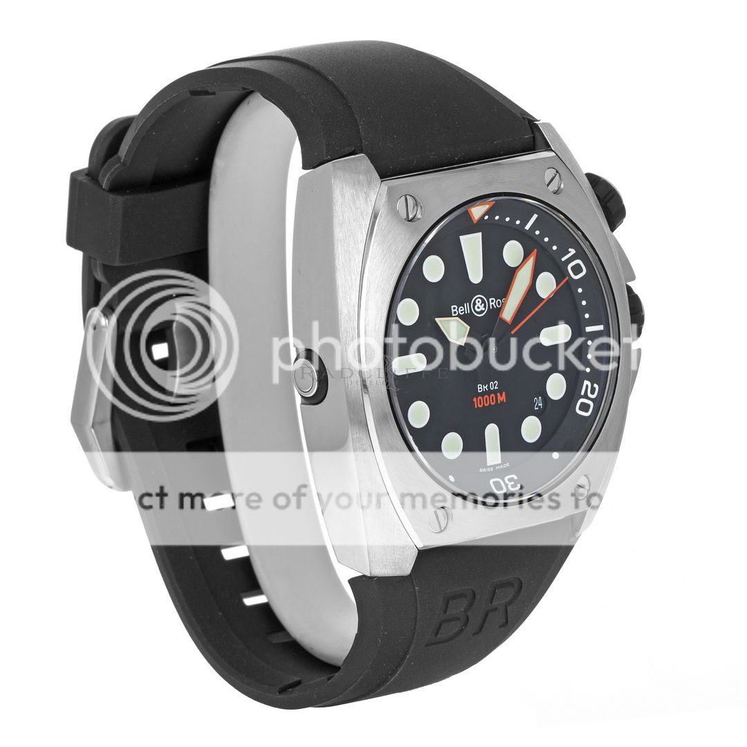 For sale is a pre-owned near mint condition 44mm stainless steel Bell & Ross Marine. The BR02 sale is for the watch with a box, papers, and factory service papers. This watch was originally purchased in 2009. While at the factory, the watch received a complete mechanical cleaning, refinishing of the case, new gaskets, new flange, and new strap. The Bell & Ross Diver has a brushed steel case which is clean and free of any dings or notable scratches. The bezel, crown guard, and crown are all in near-mint condition. The black dial, with highly luminescent hands, oversized hour markers, and date display at 4:30 is surrounded by an internally adjustable bezel. The top crown adjusts the internal unidirectional bezel for diving/timing. The Marine is on a new black OEM rubber strap with a steel tang buckle. The package also includes a strap changing tool and an unused OEM black Velcro strap. The Bell & Ross is powered by the automatic SW200 with a 38 hour power reserve.