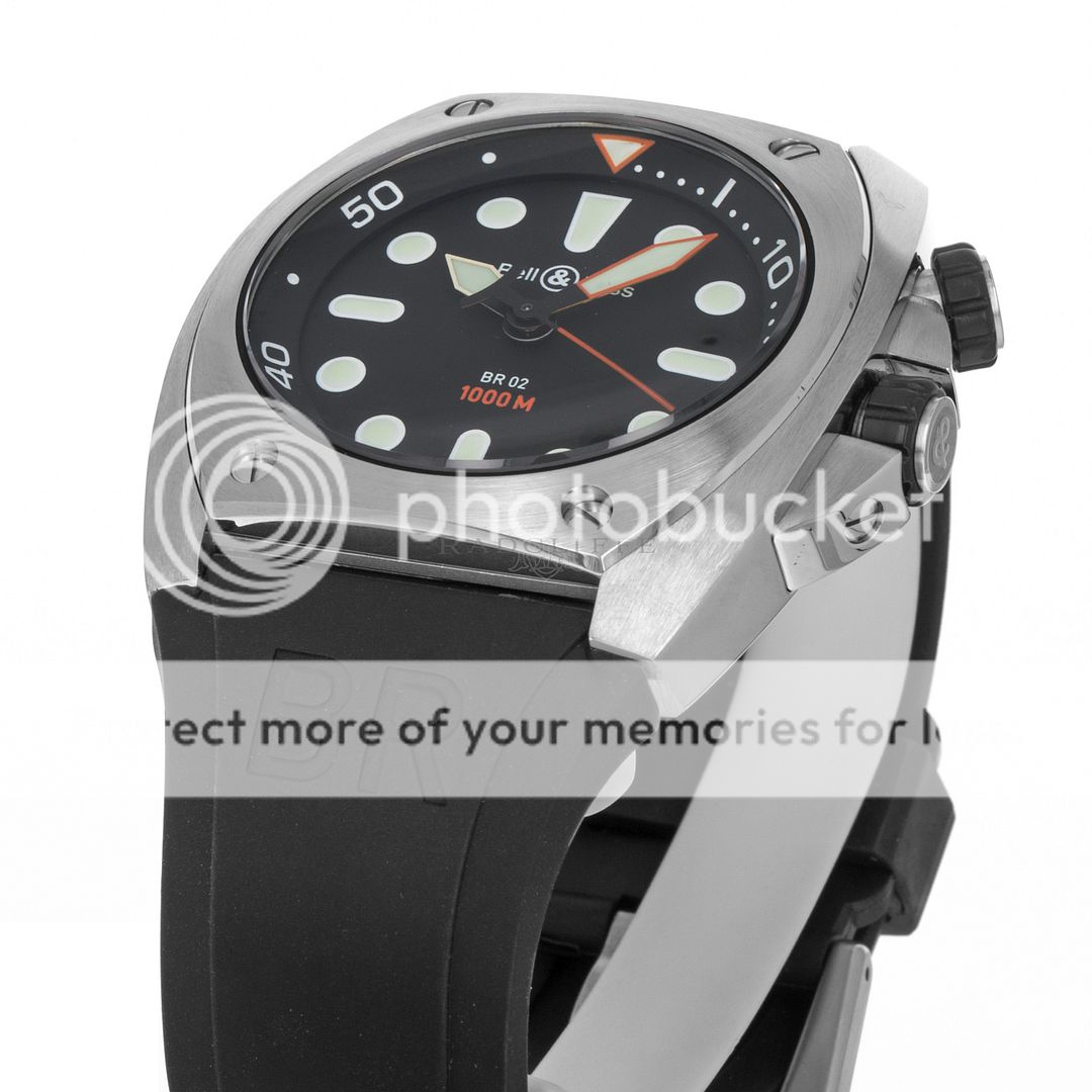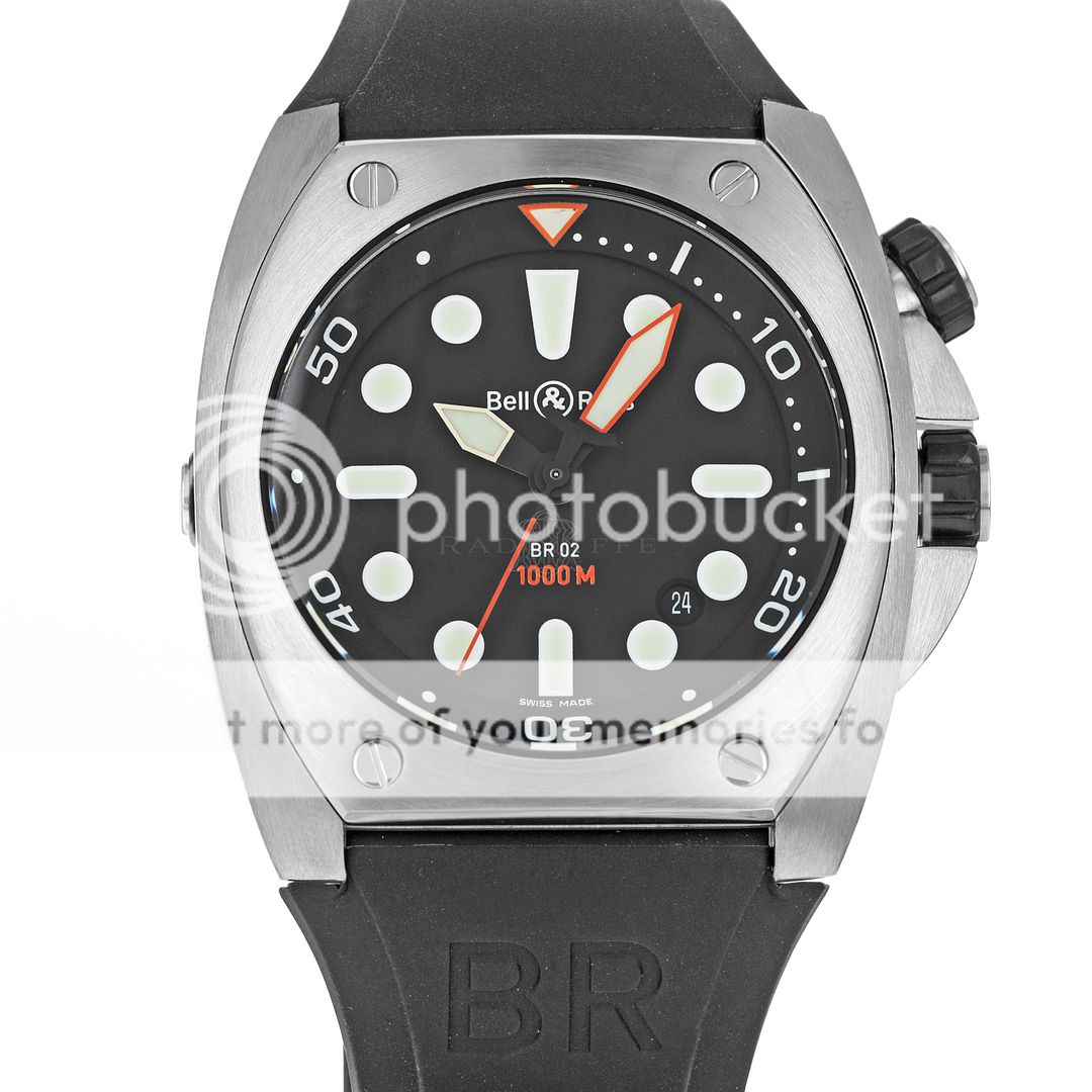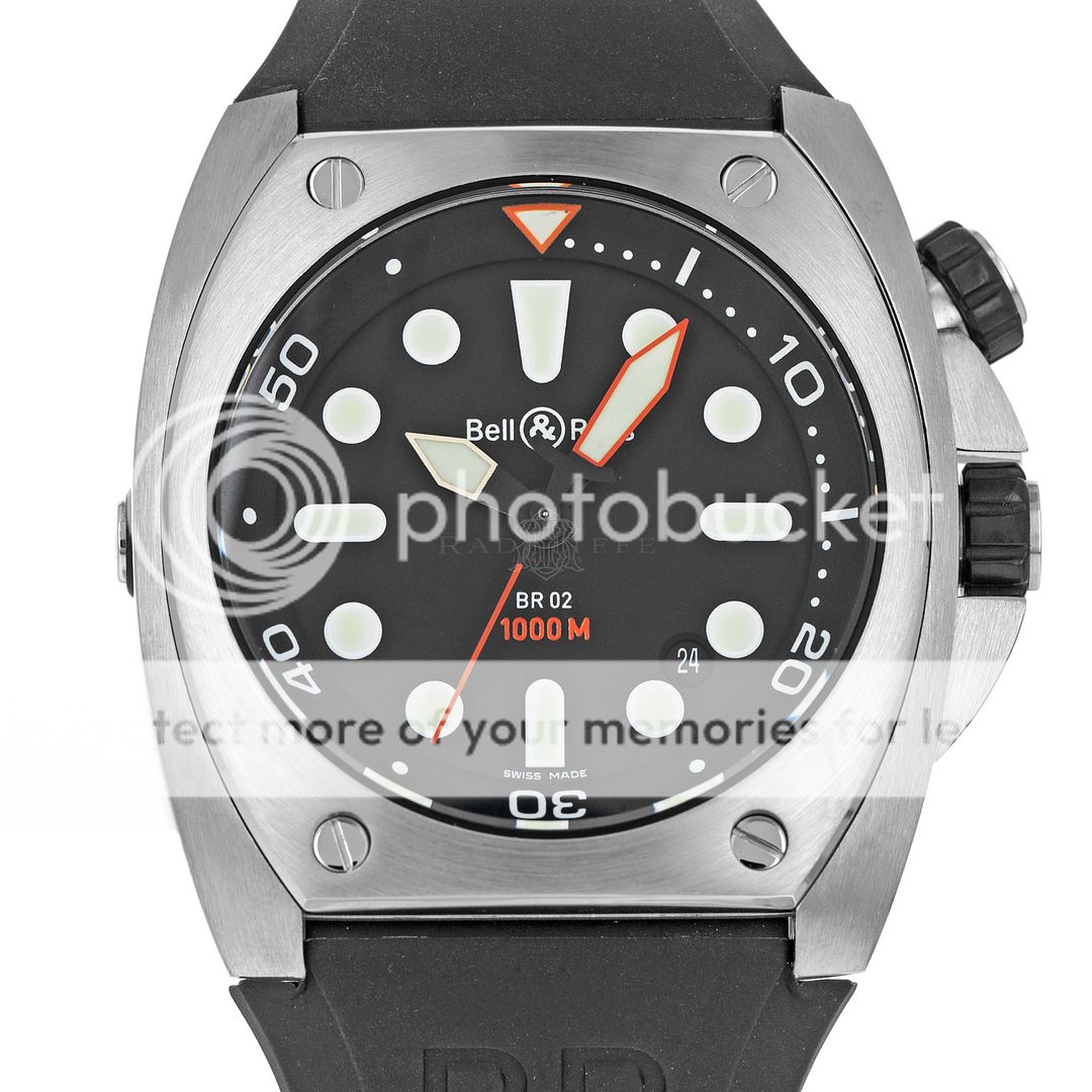 For sale is a pre-owned near mint condition 44mm stainless steel Bell & Ross Marine. The BR02 sale is for the watch with a box, papers, and factory service papers. This watch was originally purchased in 2009. While at the factory, the watch received a complete mechanical cleaning, refinishing of the case, new gaskets, new flange, and new strap. The Bell & Ross Diver has a brushed steel case which is clean and free of any dings or notable scratches. The bezel, crown guard, and crown are all in near-mint condition. The black dial, with highly luminescent hands, oversized hour markers, and date display at 4:30 is surrounded by an internally adjustable bezel. The top crown adjusts the internal unidirectional bezel for diving/timing. The Marine is on a new black OEM rubber strap with a steel tang buckle. The package also includes a strap changing tool and an unused OEM black Velcro strap. The Bell & Ross is powered by the automatic SW200 with a 38 hour power reserve.