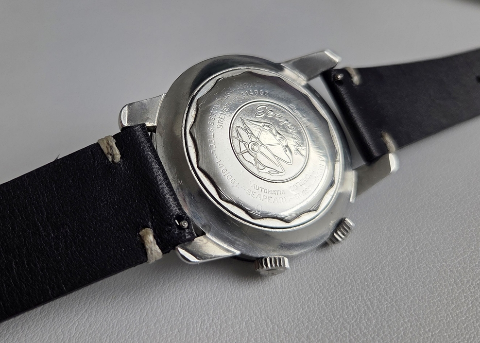 ► Correct case back with Seapearl emblem, polished but with most of the embossing still intact (serial no. 704xxx)