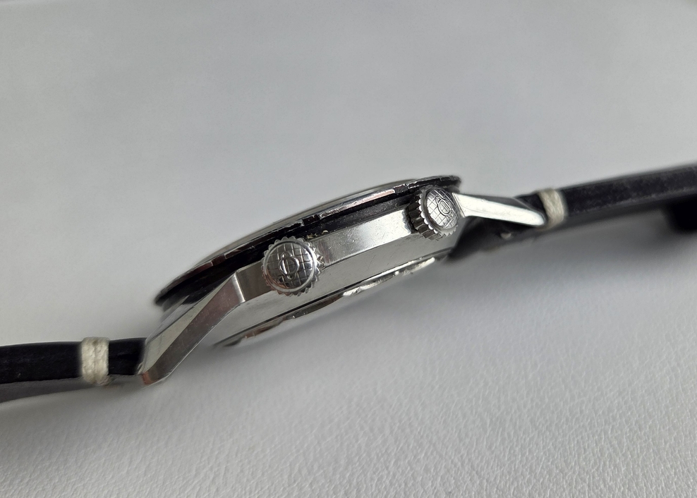 ► Beautiful Supercompressor case (made by EPSA = Ervin Piquerez SA) with bayonet locking, showing typical Enicar-style lugs in very good condition with some age-appropriate signs of wear you would expect from a well-used tool watch, but free of dents or impacts and with very clearly contoured edges