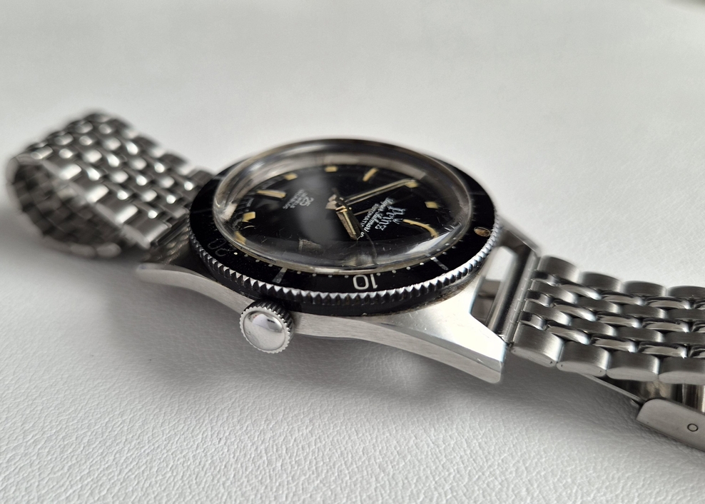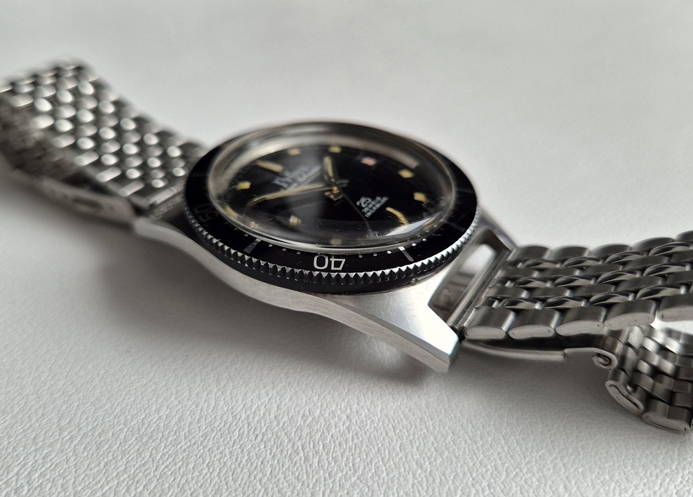 ► Super Submarino stainless steel case (originally 20 ATM) with characteristic bevelled edges, in very good, unpolished condition featuring the original surface finish (front and sides brushed, bevels polished)