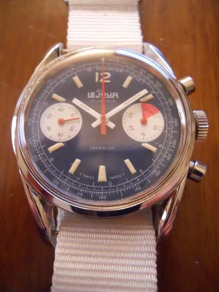 This is in almost "new-old stock" condition. Markers have a great/even patina. Beefy case is 36mm w/OUT crown and pushers. Running great/accurate. All functions operate as they should. Acrylic crystal is clean. Movement: Valjoux 7733