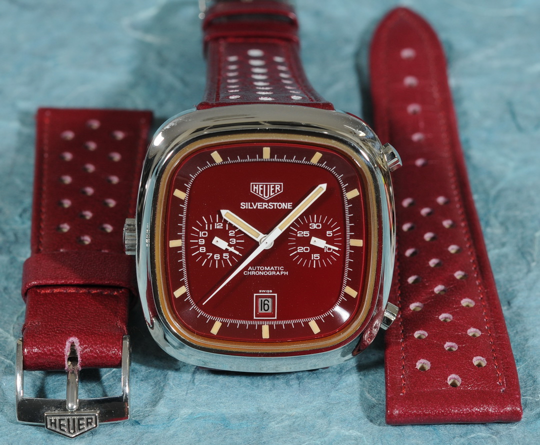 For Sale – Vintage Heuer Silverstone, in Red (Bordeaux). Condition is absolutely amazing (near mint); running very well; extras include original strap (plus an after-market one for day-to-day wear) and sapphire crystal. I haven't been wearing it often, so we'll let it go to a new home.
