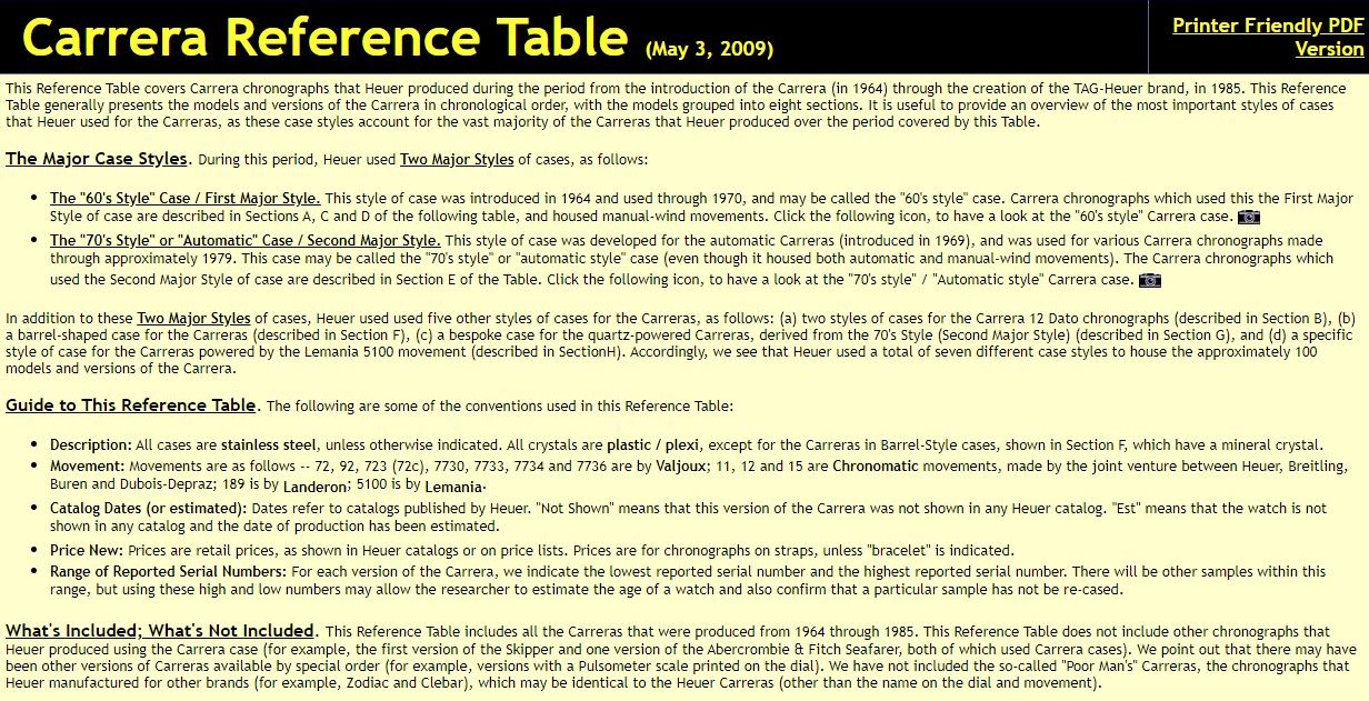 We were very proud to have published the Carrera Reference Table. You can see this entire table here -- http://onthedash.com/docs/Carrera_Reference_Table.htm
