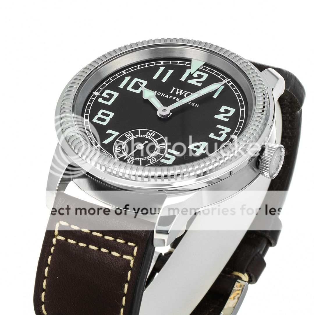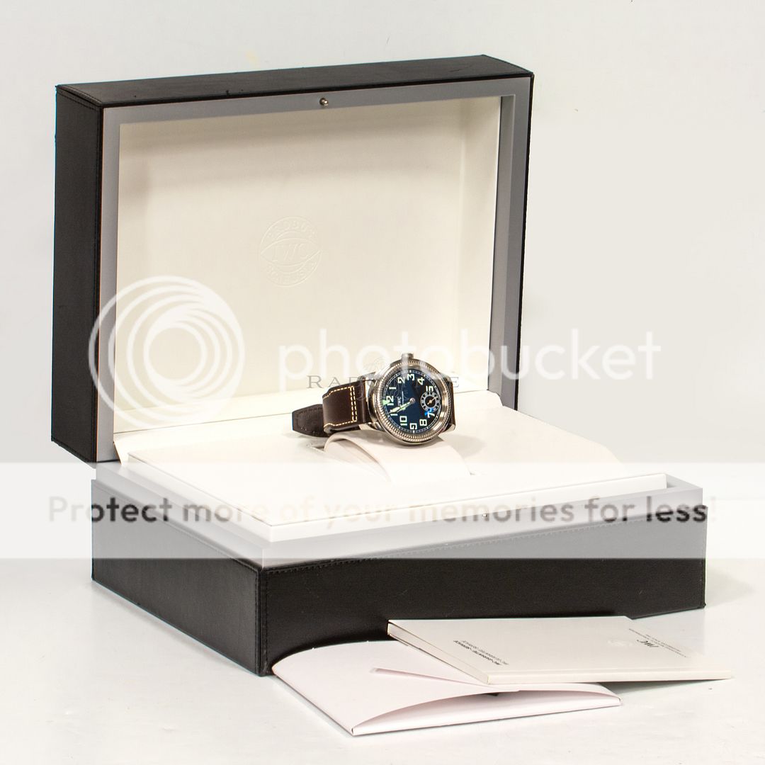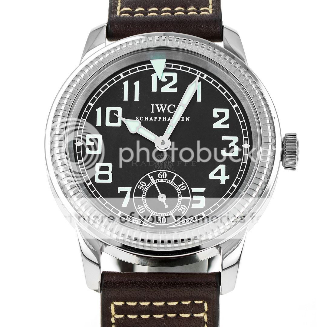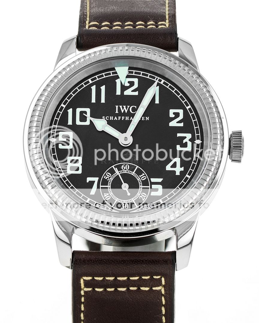For sale is a pre-owned near mint condition 44mm stainless steel IWC Vintage Collection Pilot. The IW325401 sale is for watch with box and papers. The package includes an inner box, hang tag, polishing cloth, guarantee card, and original open warranty card. The IWC has a brushed steel case with polished lug tops and a bidirectional coin edged bezel. The Pilot has a matte black dial with painted Arabic hour markers and small seconds display at 6. The watch is on an OEM brown leather strap with steel tang buckle. The one owner timepiece was originally purchased in 2008 and has seen minimal wrist time. Powering the Vintage Collection Pilot is a manual wound caliber 98300 with a 46-hour power reserve.
