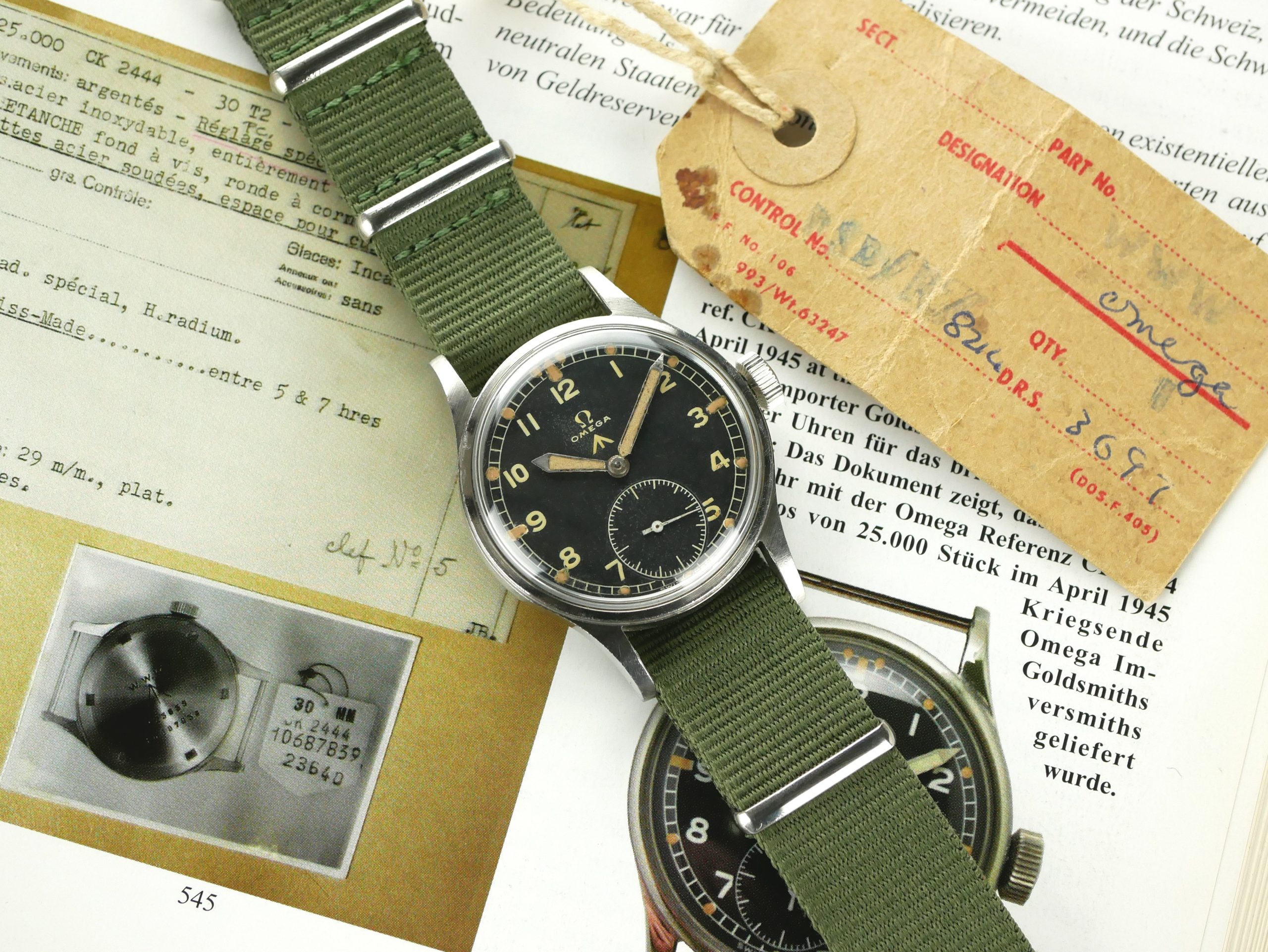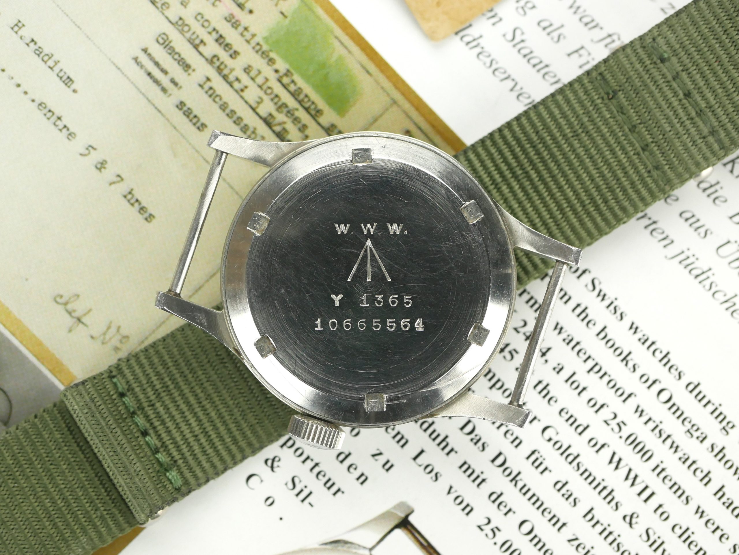 As many of you may know, these watches began being manufactured and issued to the British Army in early 1945. There were 12 Swiss manufacturers of the W.W.W. watches, and as such, the collection is commonly referred to by collectors and dealers alike as “The Dirty Dozen”. Only around 25,000 Omega W.W.W. watches were made for the British Army during WW2.