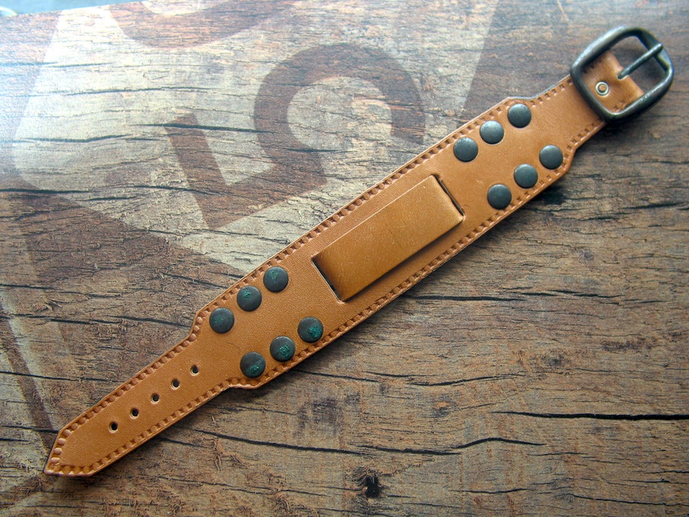With ss clip closure on the back, polished ss rivets and Buckle.