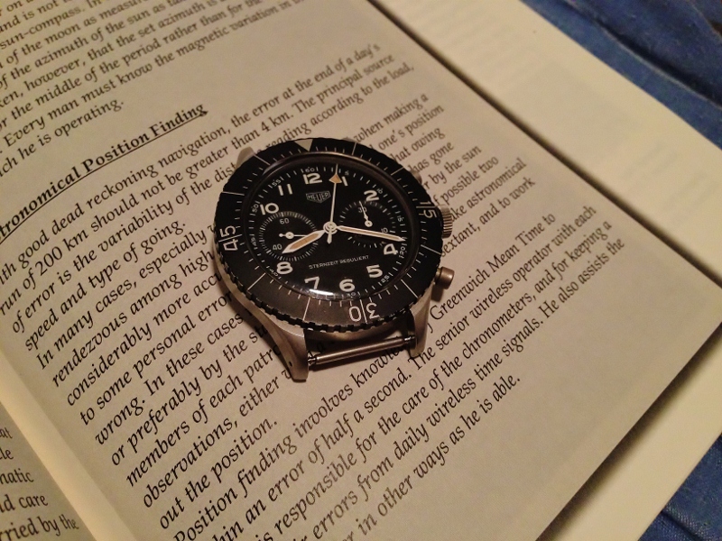 I've always liked this family, right from the early Leonidas, through the standard Bunds and on to the Tutimas of more recent times. In amongst this large family there are the oddities of course, the Heuer Cal 12 prototype Bund that never was is probably the rarest of them. Next up is probably this variant of the standard Heuer 1550 Bund, it is the Sternzeit Reguliert version, the 1551 SGSZ, issued to artillery units in the early seventies as an astro-navigational chronometer. It originally came in a leather case with a star chart and notes, but I don't have that at the moment.