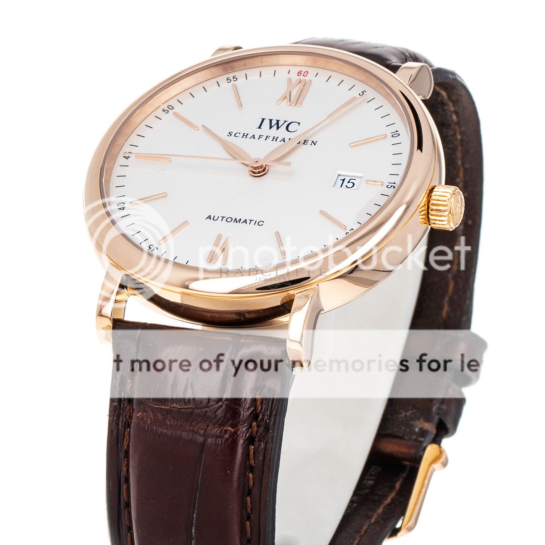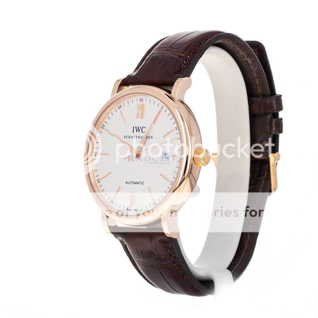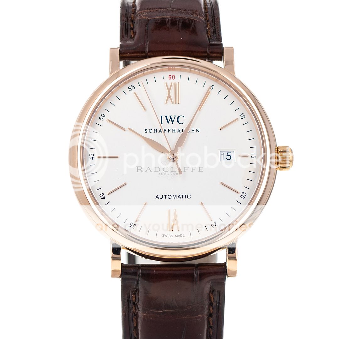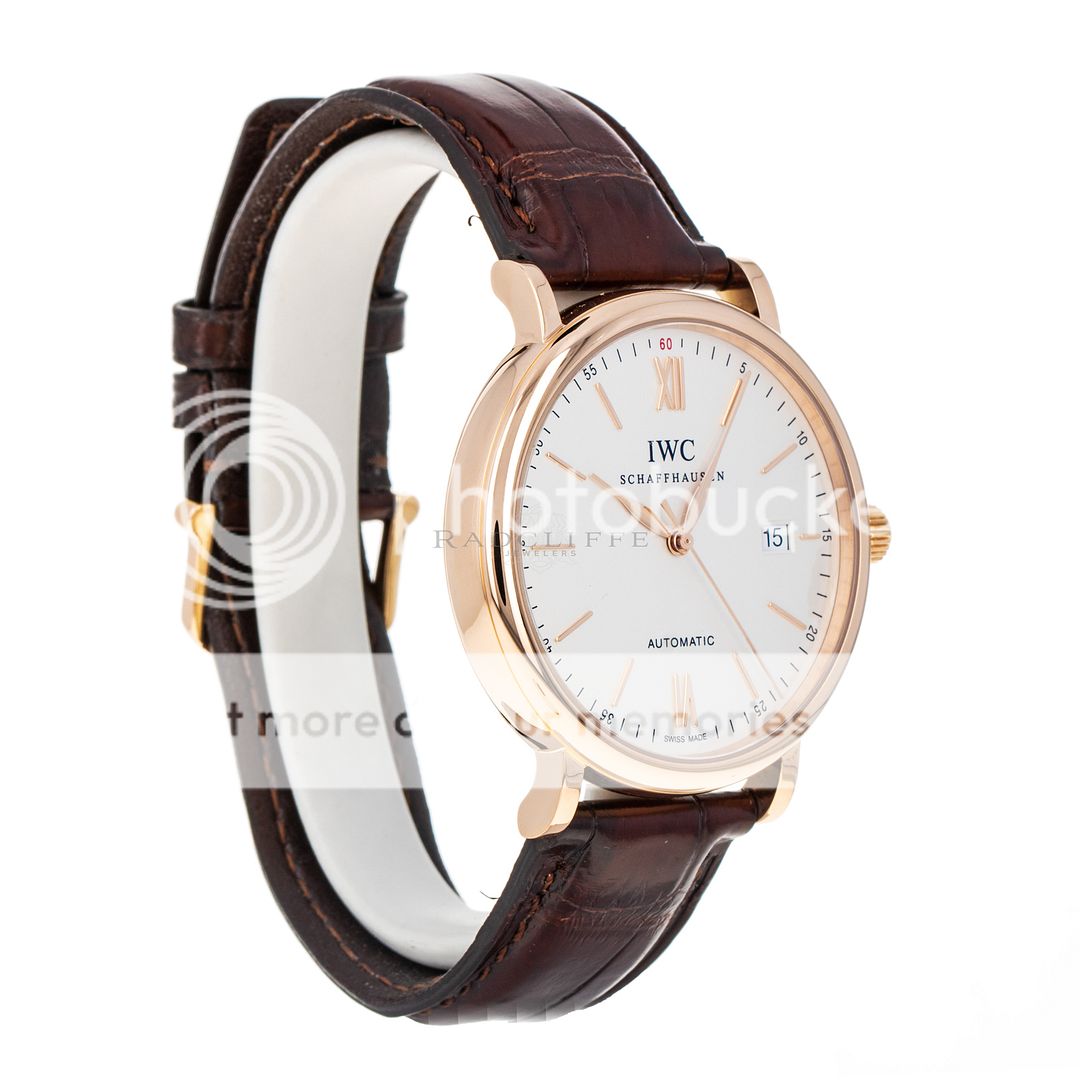 For sale is a pre-owned near mint condition 40mm 18 karat rose gold IWC Portofino automatic. The IW356504 sale is for watch with its original box. It does not include the original warranty card. The IWC has a silver tone dial with applied rose gold applied hour markers. The timepiece has matching rose gold hands complementing the hour markers. The Portofino has a high polished rose gold case with a beautifully engraved case back. The IWC is on an OEM brown alligator strap with original gold buckle. The buckle is in like-new condition, but the strap does have a slight bit of wear. The IWC is an automatic, powered by the caliber 35111 with a 42-hour power reserve.