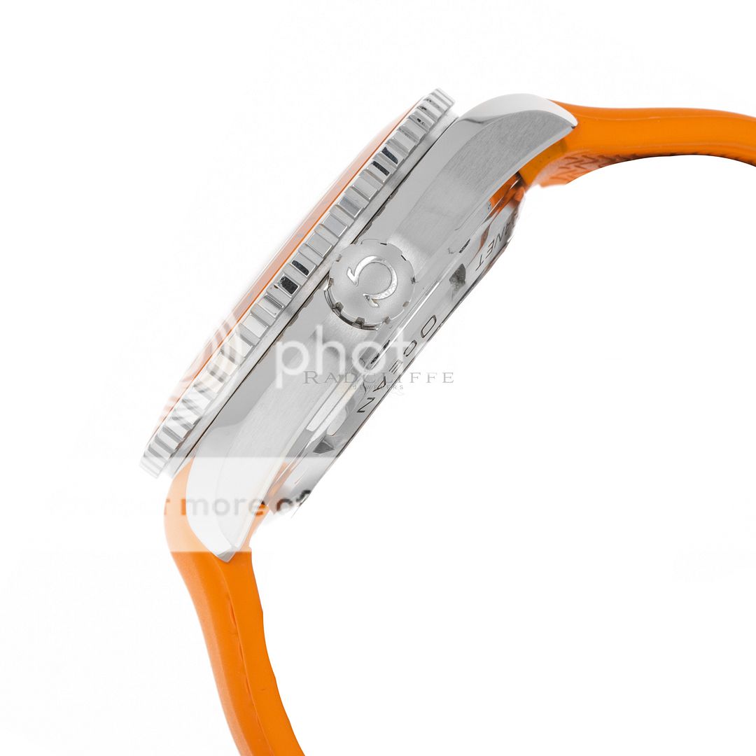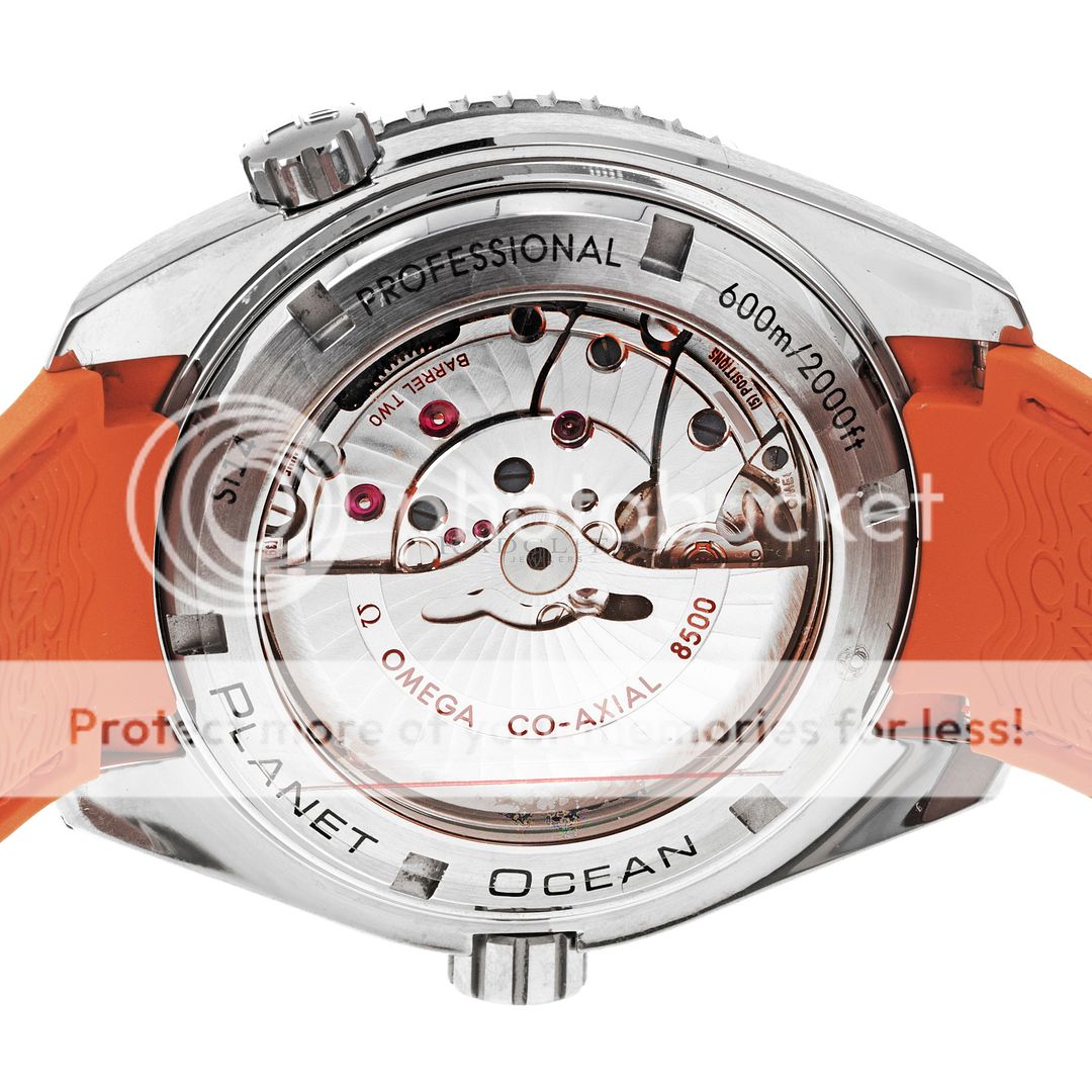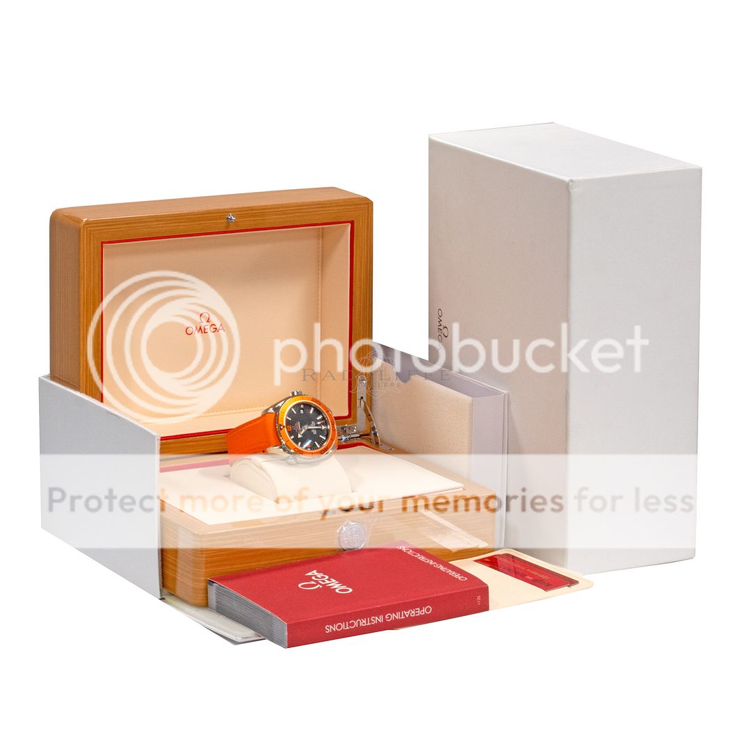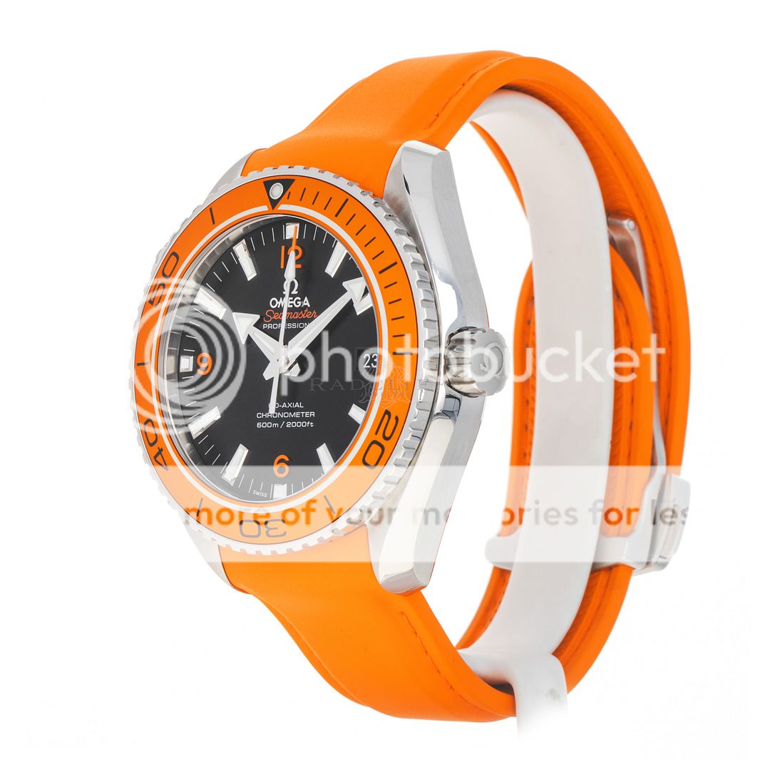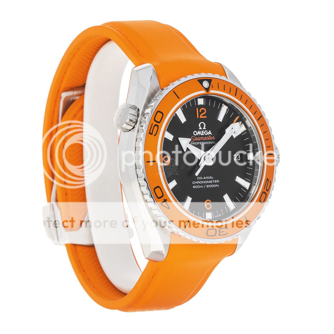 For sale is a pre-owned near mint condition 45.5mm stainless steel Omega Seamaster Planet Ocean. The 232.32.46.21.01.001 sale comes with the box and papers. The package includes the inner and outer boxes, hang tag, Omega pouch, operating instructions, and wallet. The wallet has two red cards, the pictogram card, and international warranty card dated 2018. The Omega has a black dial with luminescent stick hour markers with orange Arabic markings at 6, 9, and 12. The Planet Ocean has a unidirectional steel bezel with an orange aluminum insert. The case has brushed sides with polished lug tops, a screw down crown, and a helium release valve at 10. The lines of the case are pristine and crisp. The Seamaster has an OEM orange rubber strap with fold over push button clasp with almost no wear. The Omega has an automatic caliber 8500 movement with an Si14 escapement and 60 hour power reserve.