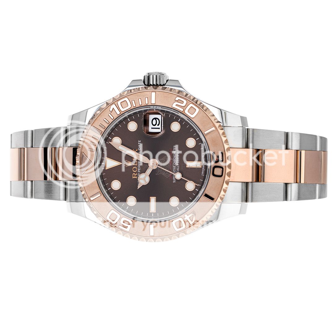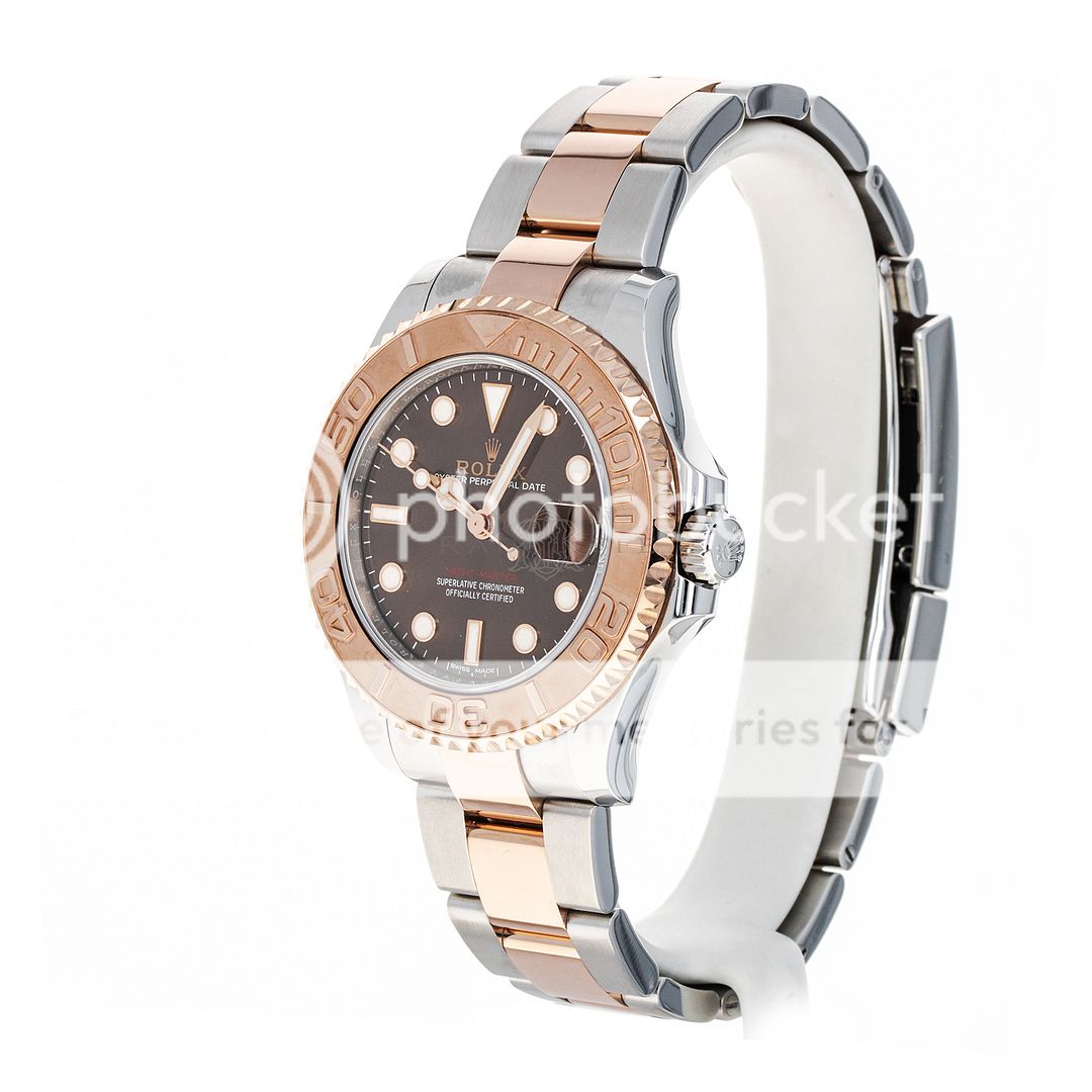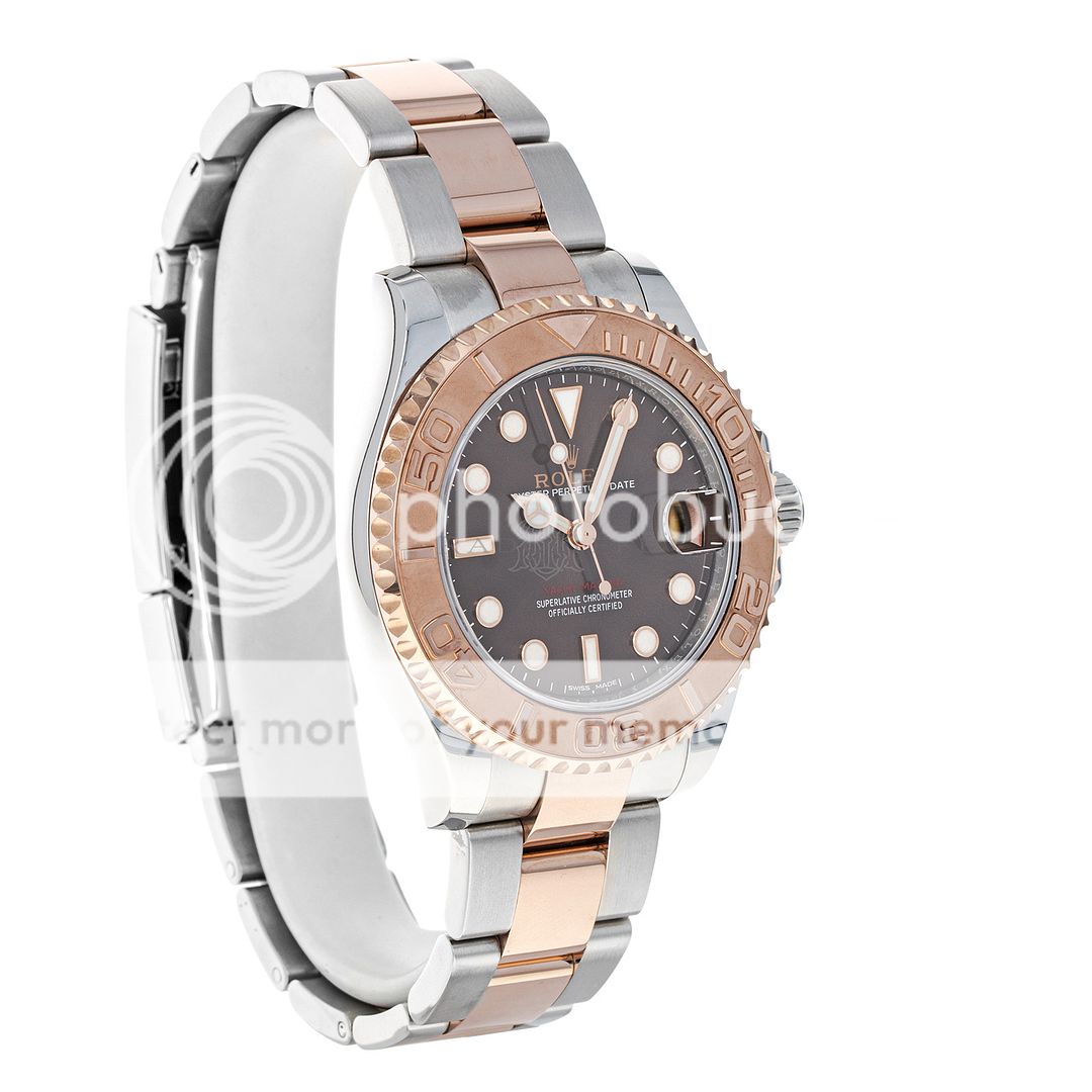 For sale is a pre-owned near mint condition 37mm Oystersteel and Everose gold Rolex Yacht-Master. The 268621 comes with a box and papers. Included in the package are the inner and outer boxes, manual, booklet, wallet, hang tags, and warranty card dated from 2017. The Yacht-Master has a sunburst chocolate dial with applied Chromalight luminescent hour markers with luminescent hands and date display at 3. The Rolex has a high polished Oystersteel case with a bidirectional Everose gold rotatable bezel with 60-minute graduation markings. The Yacht-Master features an Everose Rolesor Oyster bracelet with brushed steel sides and high polished gold center links. The bracelet has almost zero stretch and eleven full size links. Currently configured, the watch will comfortably accommodate a 7.25-inch wrist. The Rolex has an automatic in-house caliber 2236 movement with a 55 hour power reserve.