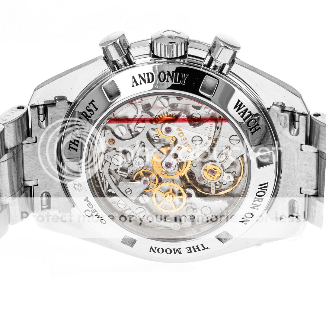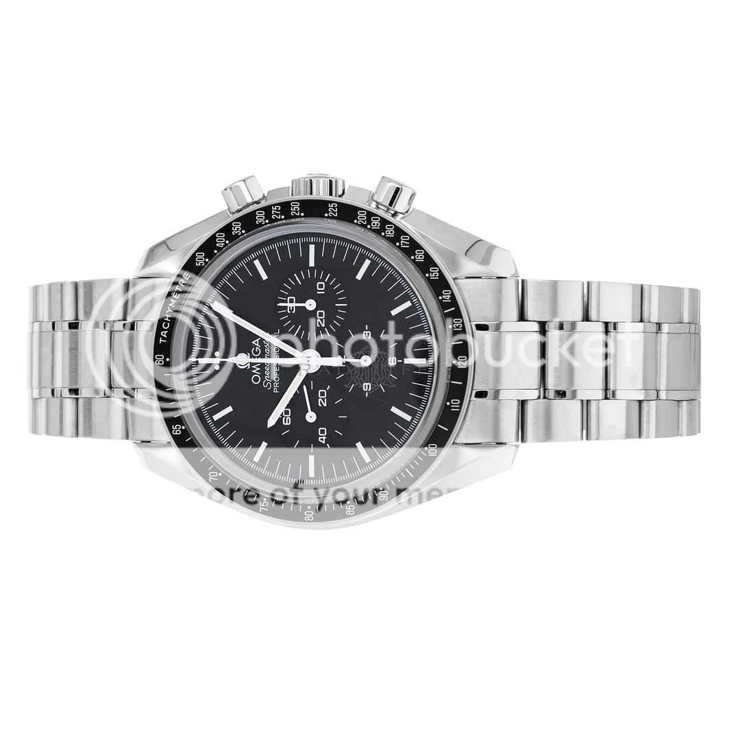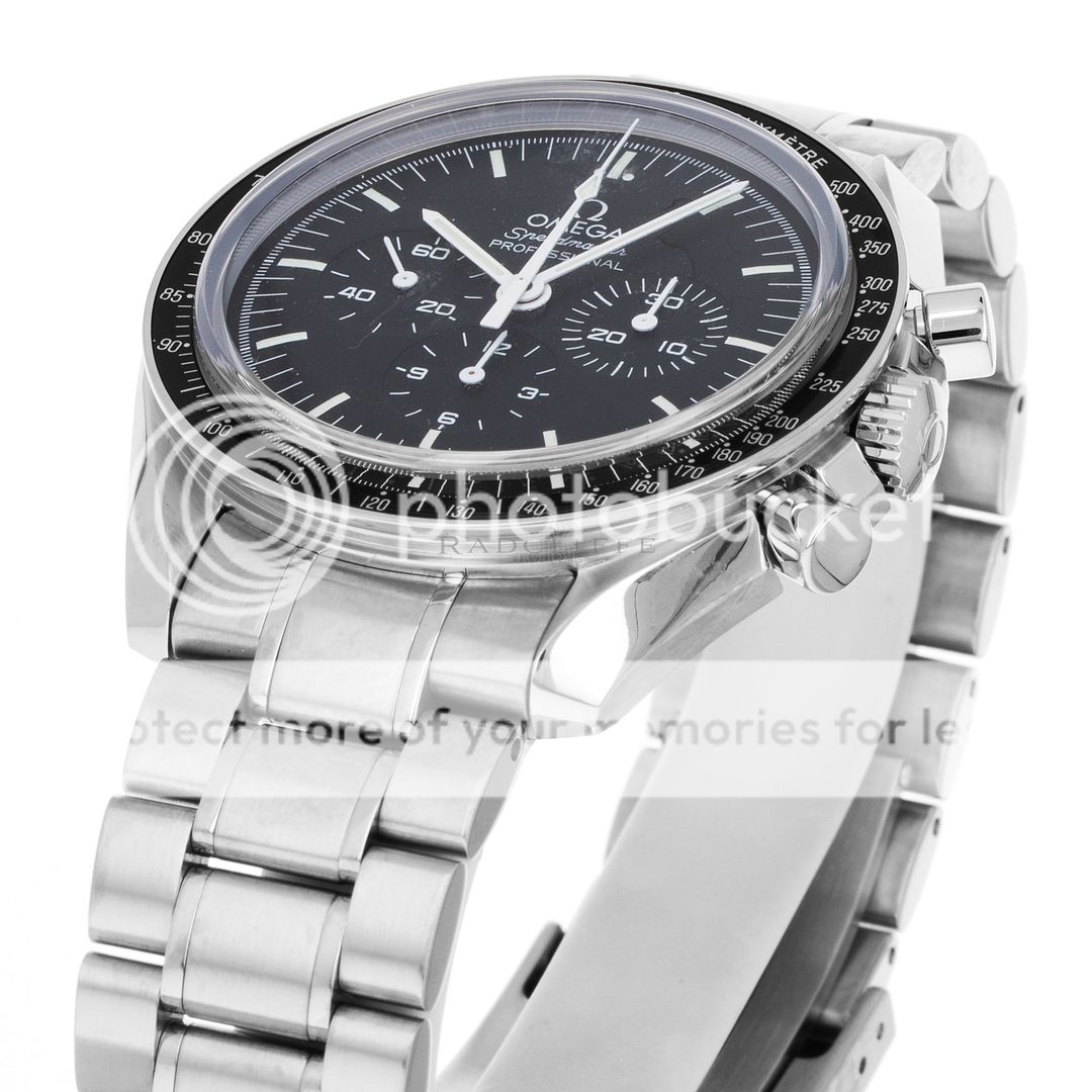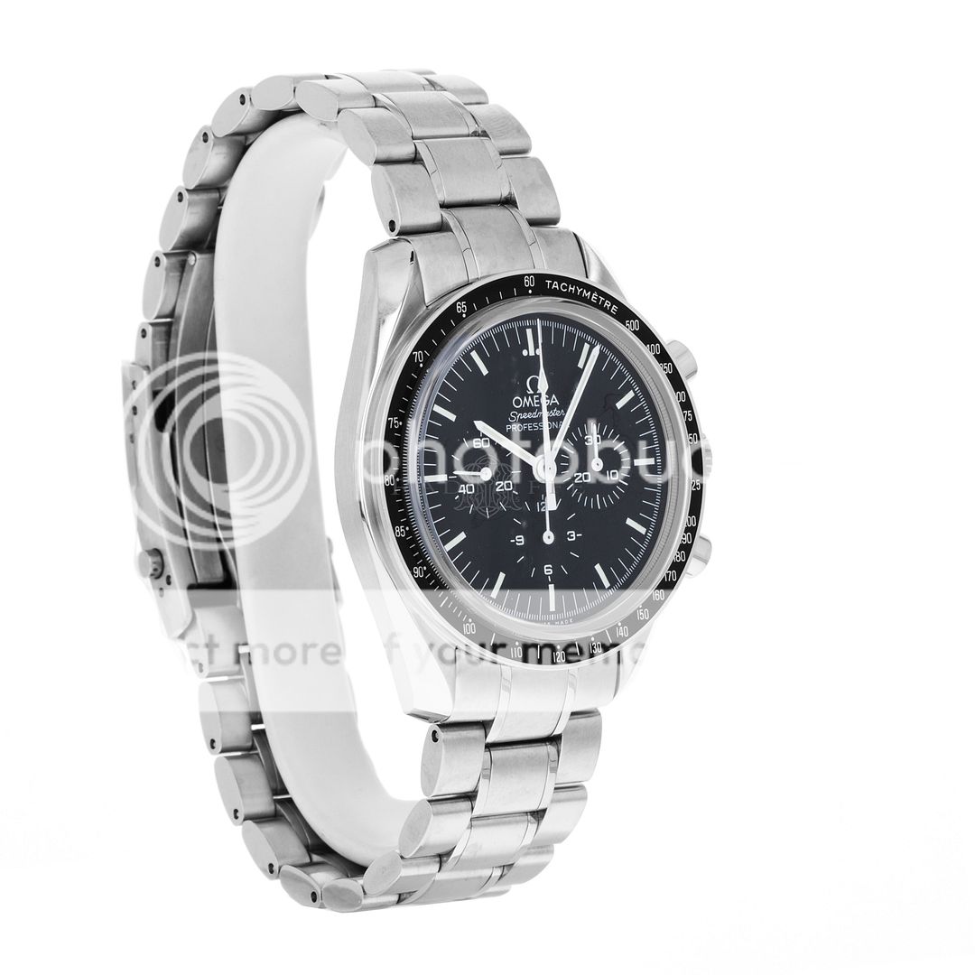 For sale is a pre-owned near mint condition 42mm stainless steel Omega Moonwatch Speedmaster. This sale for the 3573.50.00 is accompanied by box and papers. The package includes double Omega boxes, an operation manual, a pictogram card, and an international warranty card dated from December of 2014. The Speedmaster’s three-register black dial features luminescent pencil hands, luminescent stick indices, and a luminescent central chronograph hand. The polished and brushed finish stainless steel case is in near mint condition with no notable imperfections present. The case is affixed to a fixed stainless steel bezel with a polished black tachymeter ring and is mounted on a stainless steel bracelet with a push button fold over clasp. The bracelet is in 95% or better condition with little to no stretch present. In its current configuration the Speedmaster can accommodate a wrist circumference of approximately 7.75-inches with eight removable links and micro adjustment available. At the heart of the Speedmaster is the famous manual-winding movement caliber 1863 with approximately 48 hours of power reserve, visible through the transparent case back.