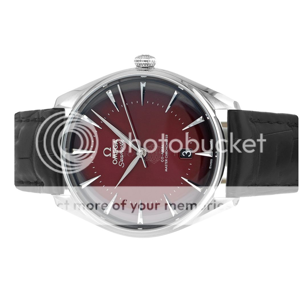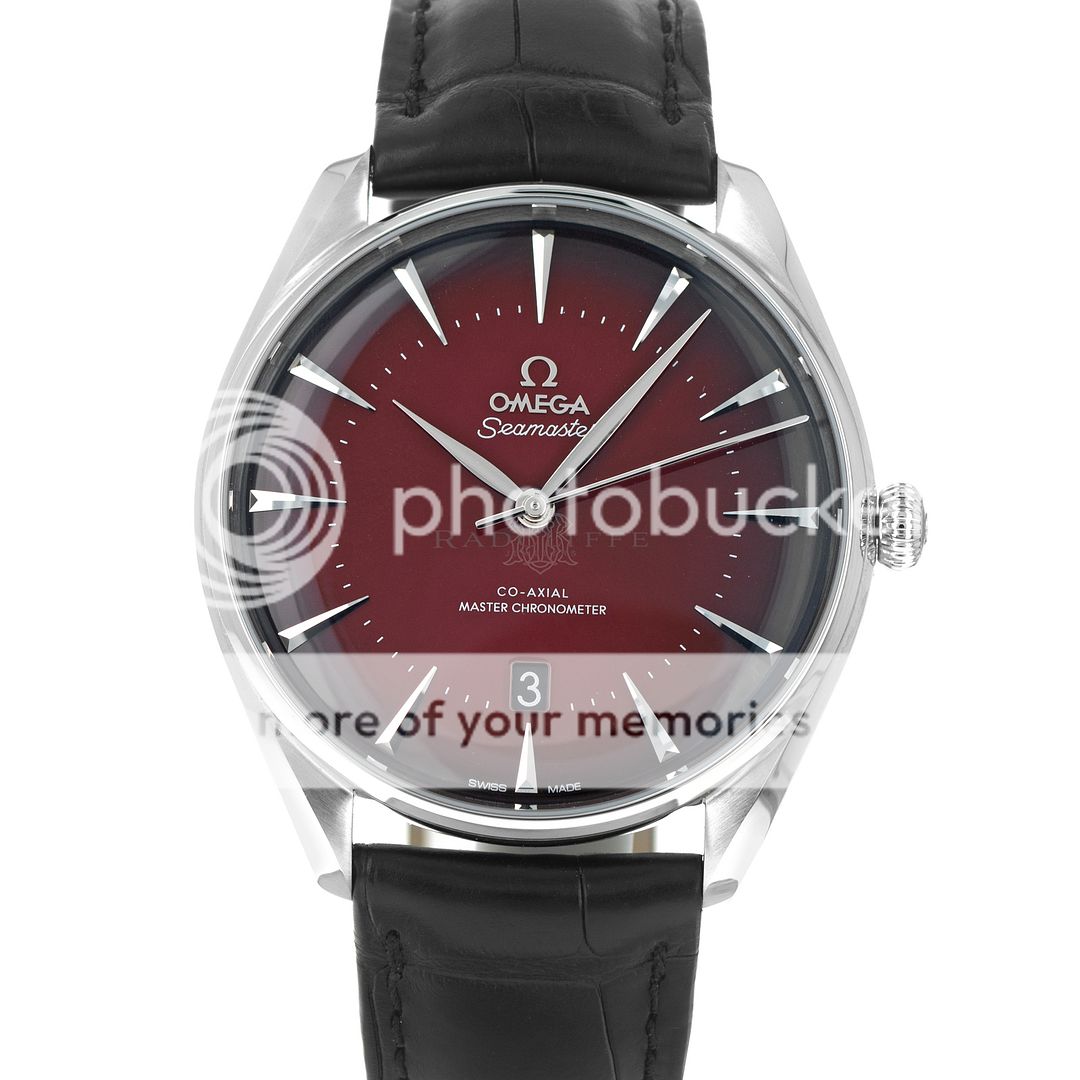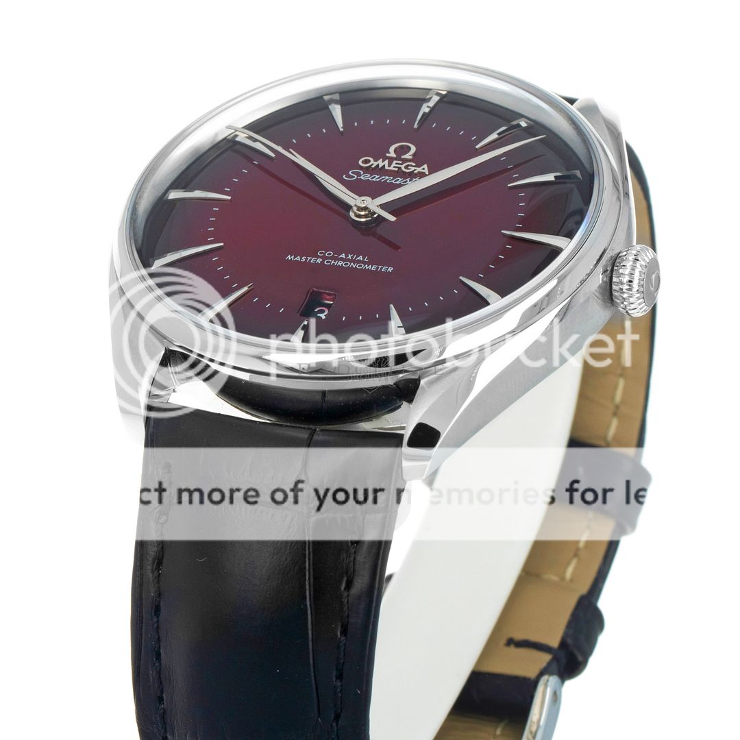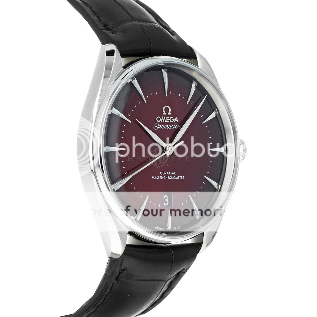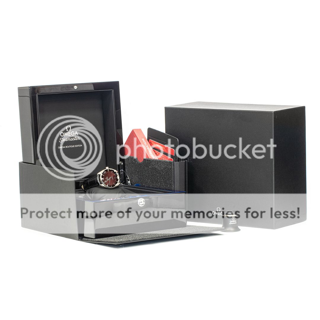 For sale is a pre-owned near mint condition 39.5mm stainless steel Omega Seamaster Exclusive Boutique Edition. The 511.13.40.20.11.002 sale is for the watch with box and papers. The package includes inner and outer boxes, magnifier loop, instruction manual, black Omega wallet, pictogram, master chronometer card, and warranty card dated from fall of 2023. The Omega has a brushed steel case with polished highlights on the bevels and an inner bezel ring. The Omega features a stunning red sunburst dial with applied elongated pyramid hour markers, central sweeping second hand, and date aperture at six. The Omega is on the OEM black alligator strap with steel tang buckle. The case back inner ring is laser engraved with a “visual tribute to the brand’s iconography, adventures, and achievements.” Powering the Omega is the automatic Master Chronometer certified caliber 8800 with a 55 hour power reserve which is prominently displayed through the open case back.