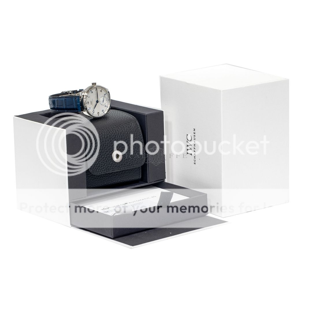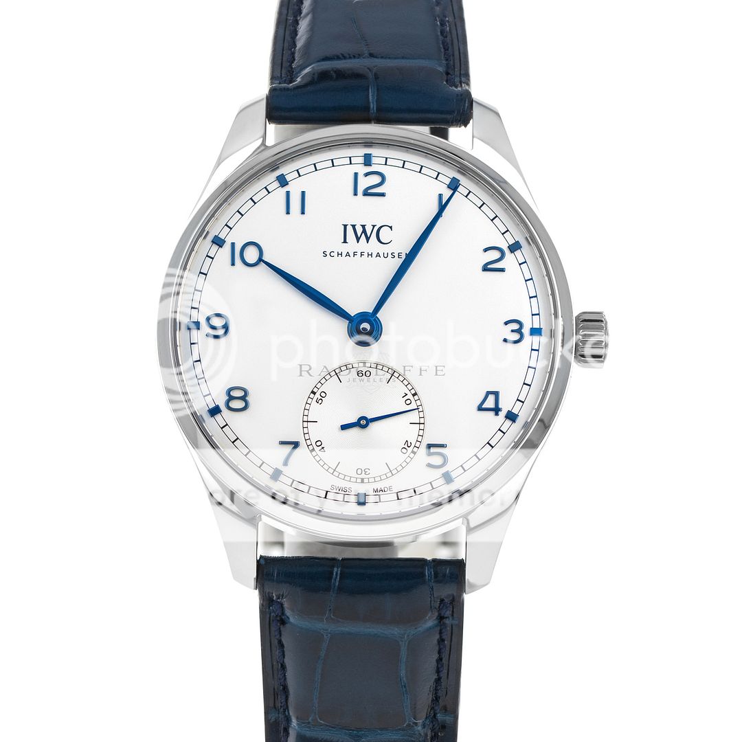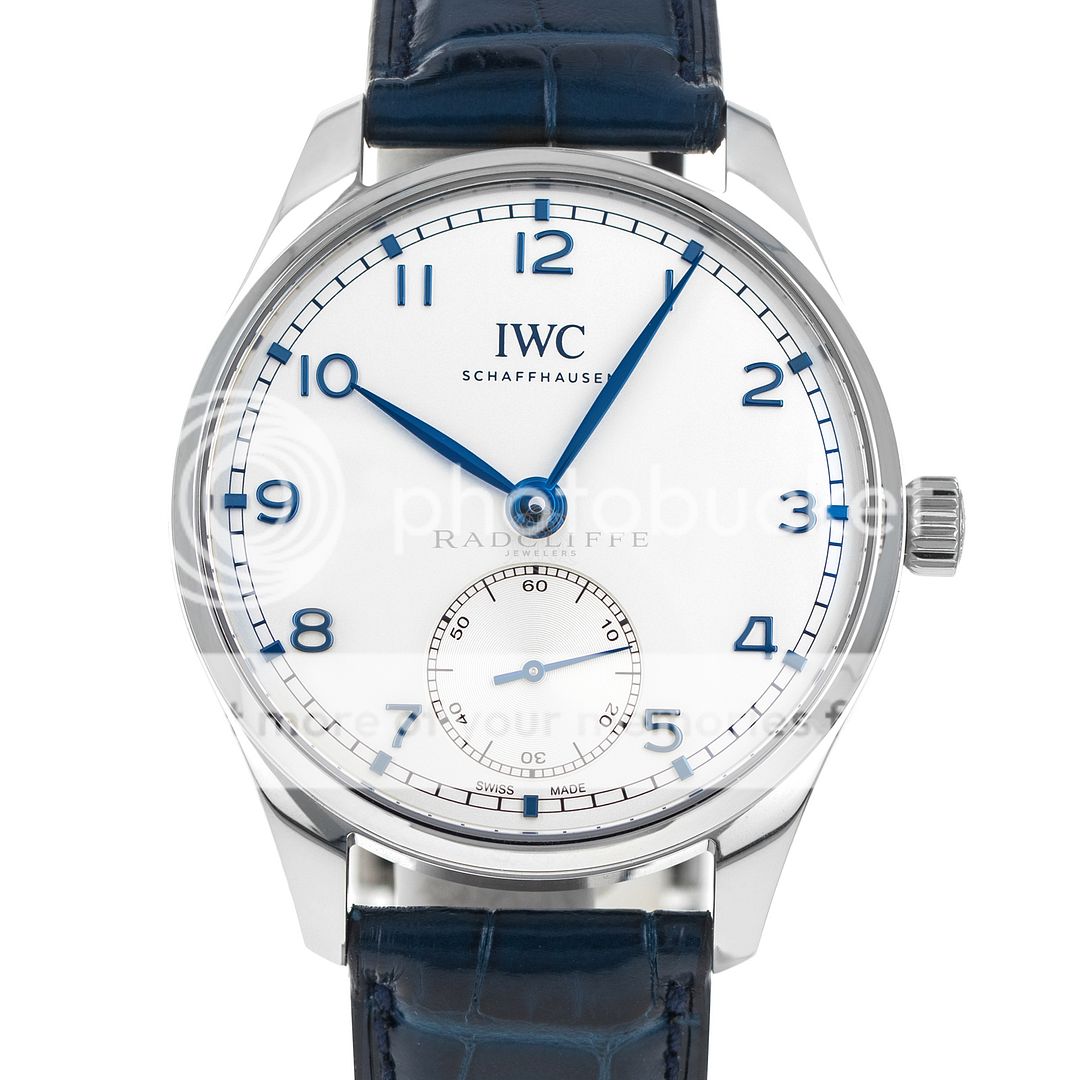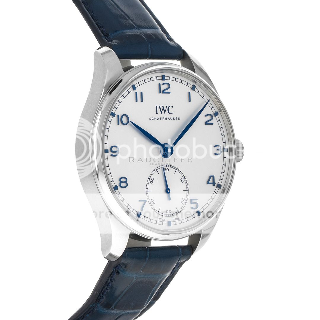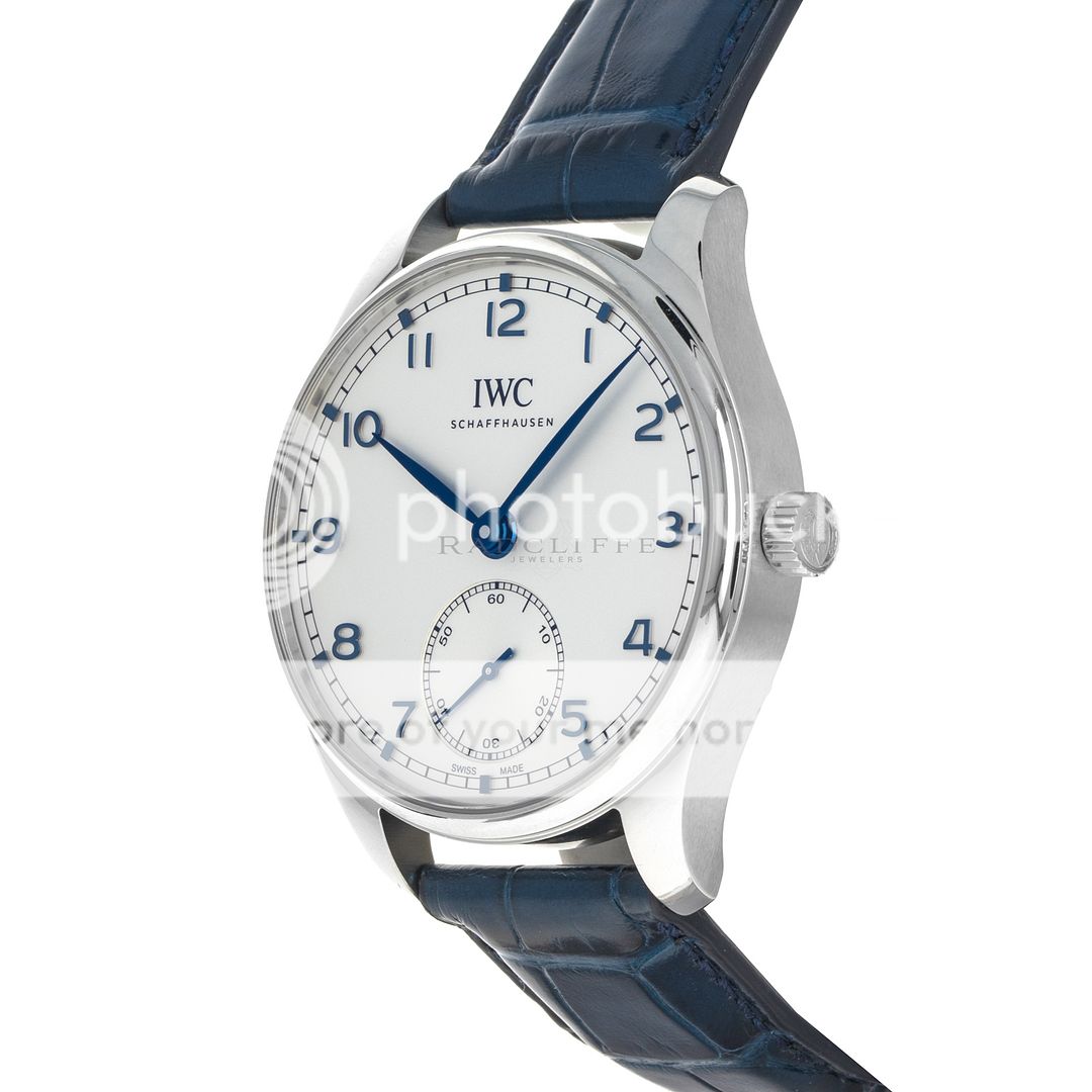 For sale is a pre-owned near mint condition 40.4mm stainless steel IWC Portugieser. The IW358304 sale is for the watch with original box and papers. Originally purchased in 2023, the IWC has a brushed stainless steel case with polished highlights. The Portugieser has a silver dial with applied high polished Arabic hour markers and matching polished blued steel javelin hands. Neither the case, crystal, nor the strap show any signs of wear. The case is mounted on an OEM blue alligator strap with a steel fold over deployant buckle. The IWC has an open case back proudly displaying the automatic caliber 82200 with a 60-hour power reserve. For additional information on this timepiece please email estatewatches@radcliffejewelers.com.
